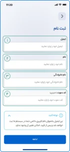 - ایمیل خود را وارد نمایید ( توجه داشته باشید هر ایمیل مختص ثبت نام یک کاربر میباشد).